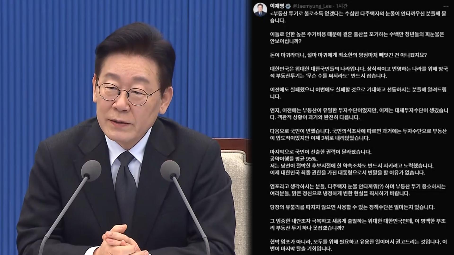 이 대통령 "다주택자보다 집값 폭등 고통받는 국민 더 배려받아야"
