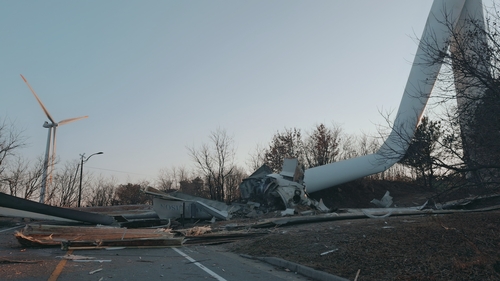 영덕서 풍력발전기 쓰려져 도로 통제…인명피해 없어오늘(2일) 오후 4시 40분쯤 경북 영덕군 영덕읍 풍력발전단지에서 풍력발전기 1기가 쓰러지는 사고가 났습니다.사고가 난 발전기는 기둥 중간 부분이 꺾이면서 도로로 넘어졌습니다.이 사고로 인명 피해는 없었지만, 안전사고 예방을 위