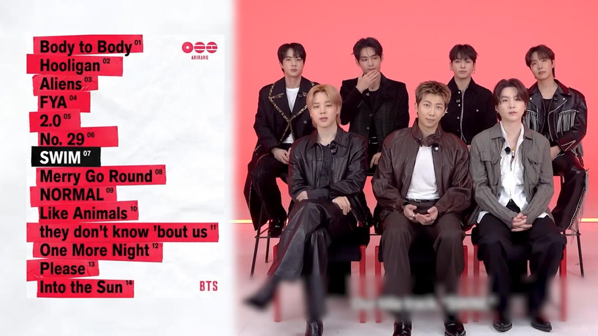 [앵커]세계적인 그룹 방탄소년단이 '가장 우리다운 것'을 들고 돌아왔습니다.방탄소년단이 3년 9개월 만에 내놓은 완전체 앨범 '아리랑'에는 '한국적인 정서'를 녹여낸 총 14곡이 담겼습니다.박지은 기자입니다.[기자]"Swim, S