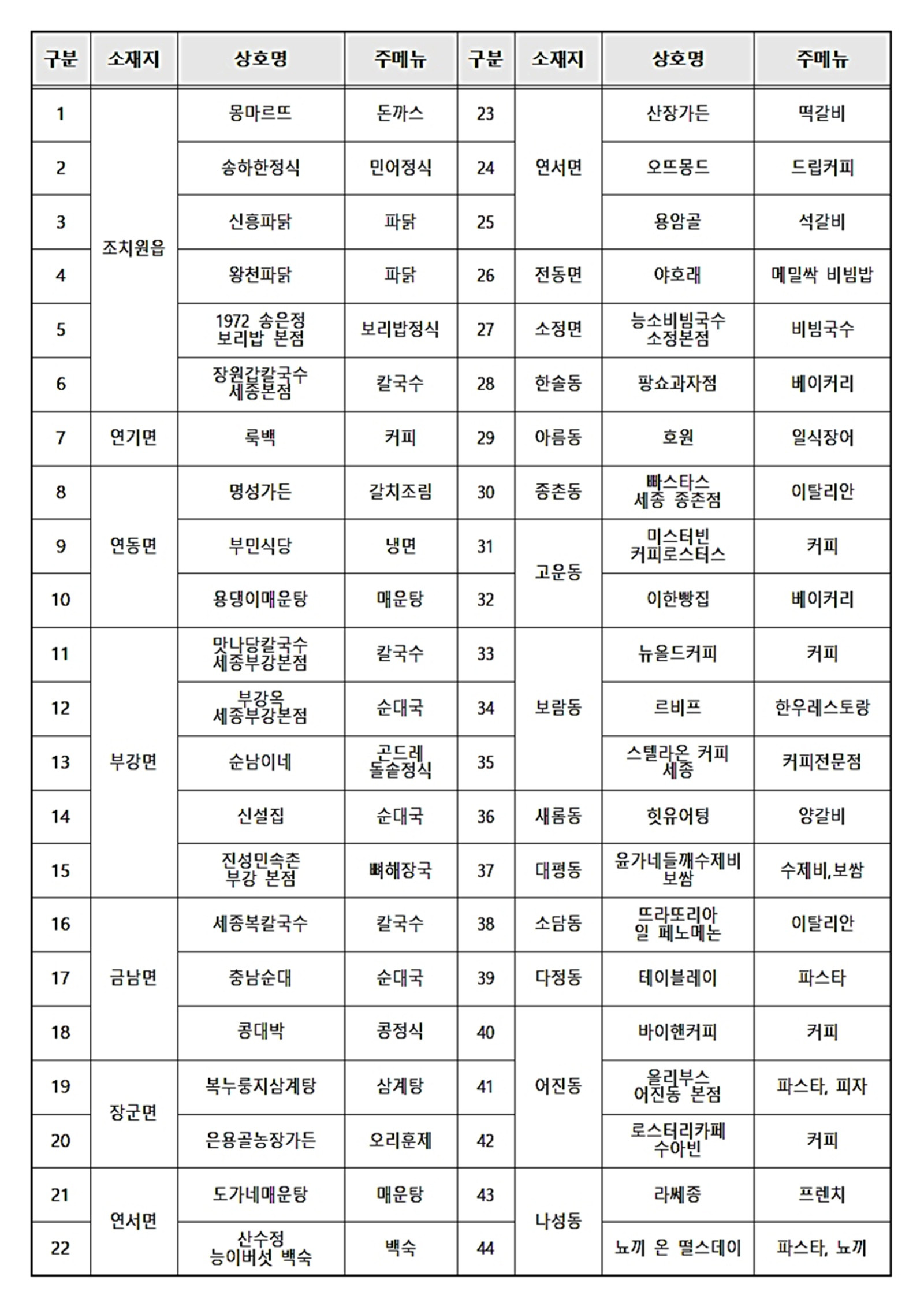 2025 세종사랑맛집 리스트[세종시 제종. 재판매 및 DB 금지][세종시 제종. 재판매 및 DB 금지]