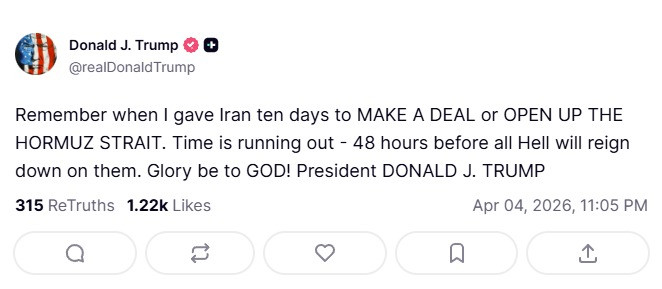 [도널드 트럼프 미국 대통령 트루스소셜 계정 제공][도널드 트럼프 미국 대통령 트루스소셜 계정 제공]도널드 트럼프 미국 대통령은 현지시간 4일 이란을 향해 "시간이 많지 않다. 그들에게 지옥문이 열릴 때까지 48시간 남았다"고 말했습니다.