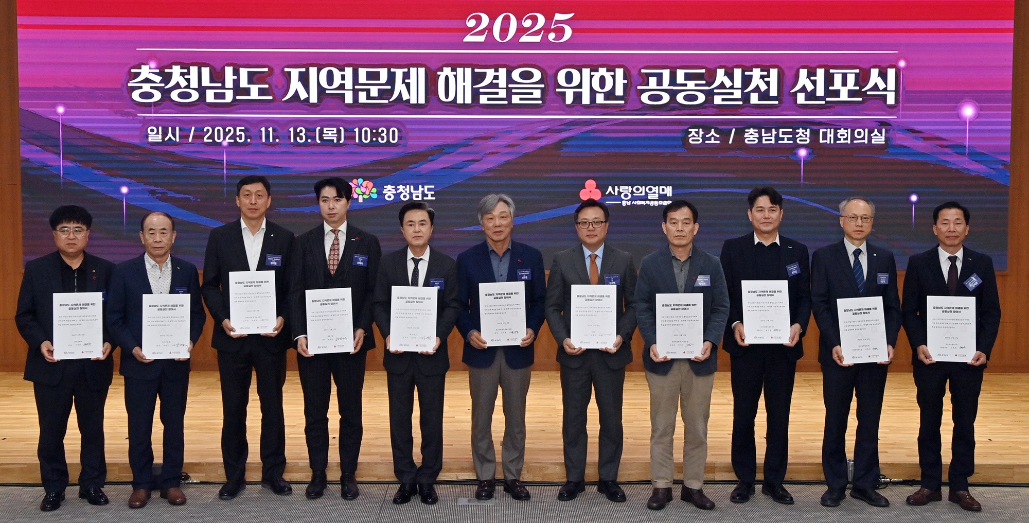 충남도·사회복지공동모금회·지역기업,지역문제 해결 실천 맞손돌봄 전문가 양성 교육, 돌봄 대상 발굴·서비스 연계 추진충남도와 충남사회복지공동모금회, 도내 기업이 지역문제 해결을 위해 힘을 합쳤습니다.도는 오늘(13일) 도청 대회의실에서 김태흠 지사와 성우종 충남사회복지공동모금회장, 도내