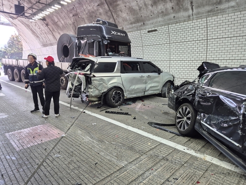 천안논산 고속도로 차령터널서 차량 9대 추돌…9명 다쳐오늘(12일) 오후 2시쯤 충남 공주 정안면 천안논산고속도로의 상행선 차령터널 안에서 화물차와 승합차 등 9대가 잇따라 추돌해 9명이 다쳤습니다.경찰에 따르면 이 사고로 50대 승합차 운전자가 의식이 없는 상태로 병원으로 옮겨졌습