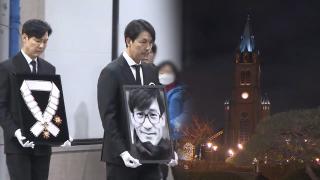 국민배우 안성기 추모미사…배우들 눈물 속 배웅[앵커]'국민배우' 고 안성기 씨가 오늘 우리 곁을 떠나 영원한 안식에 들어갑니다.오늘 새벽 빈소를 떠난 운구 행렬은 서울 명동성당에 도착해 추모미사가 이뤄지고 있습니다.현장에 나가 있는 취재기자 연결합니다.이따끔 기자.[기자]네